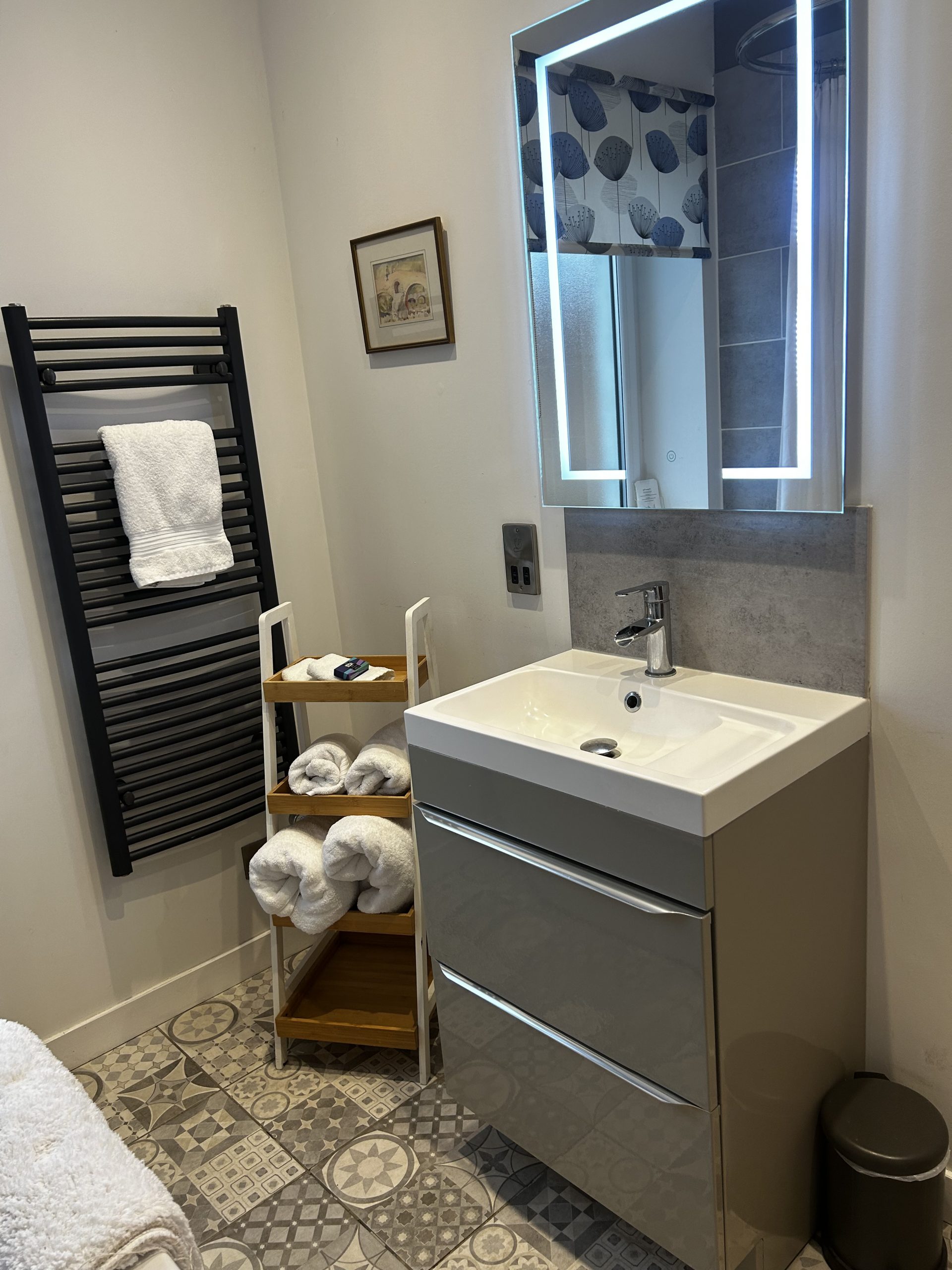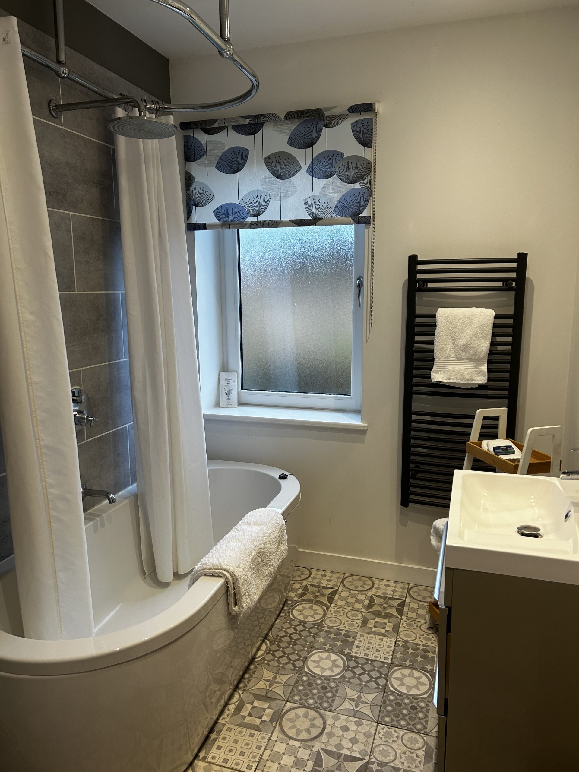 • Bathroom: bath with overhead shower