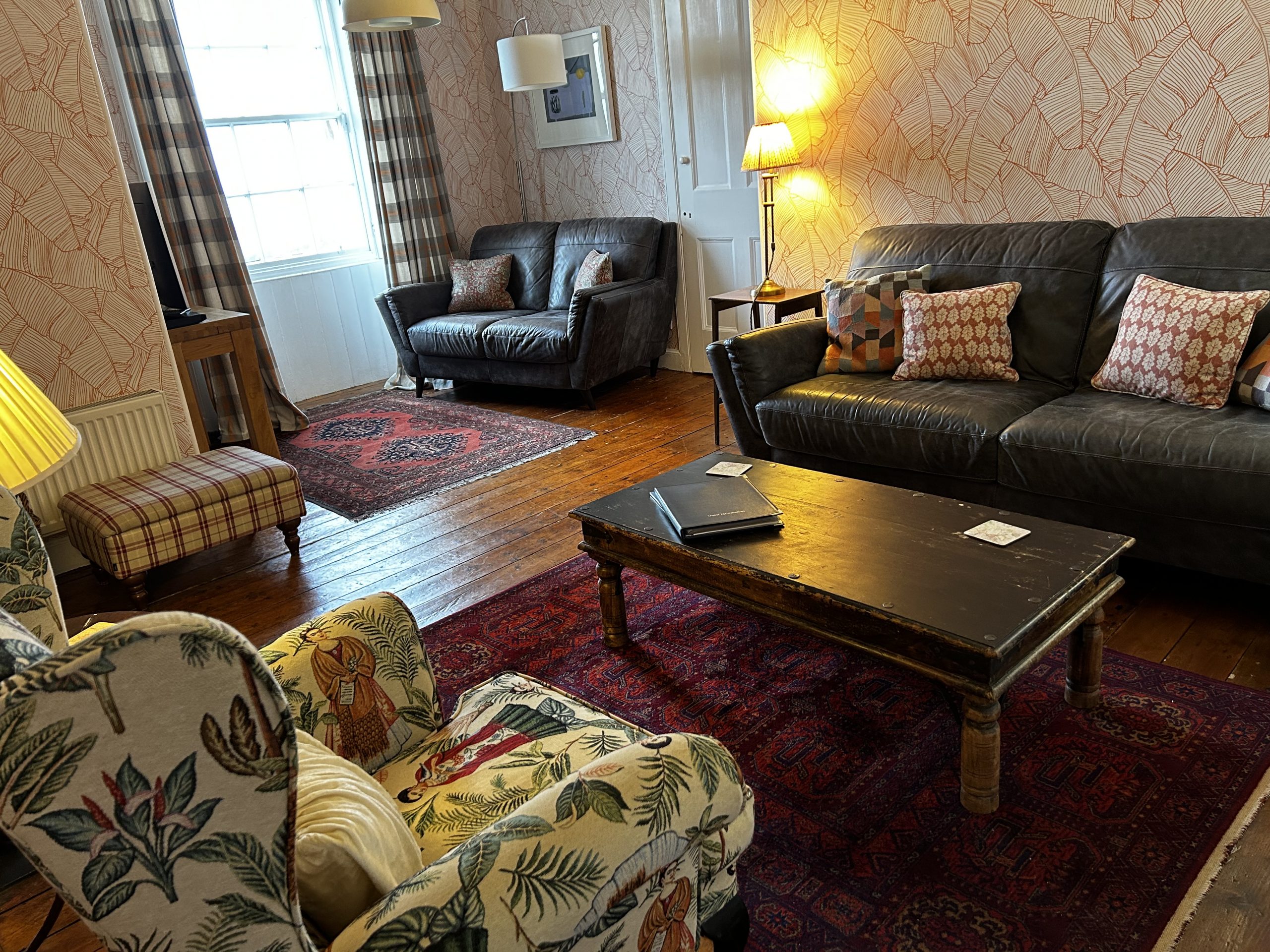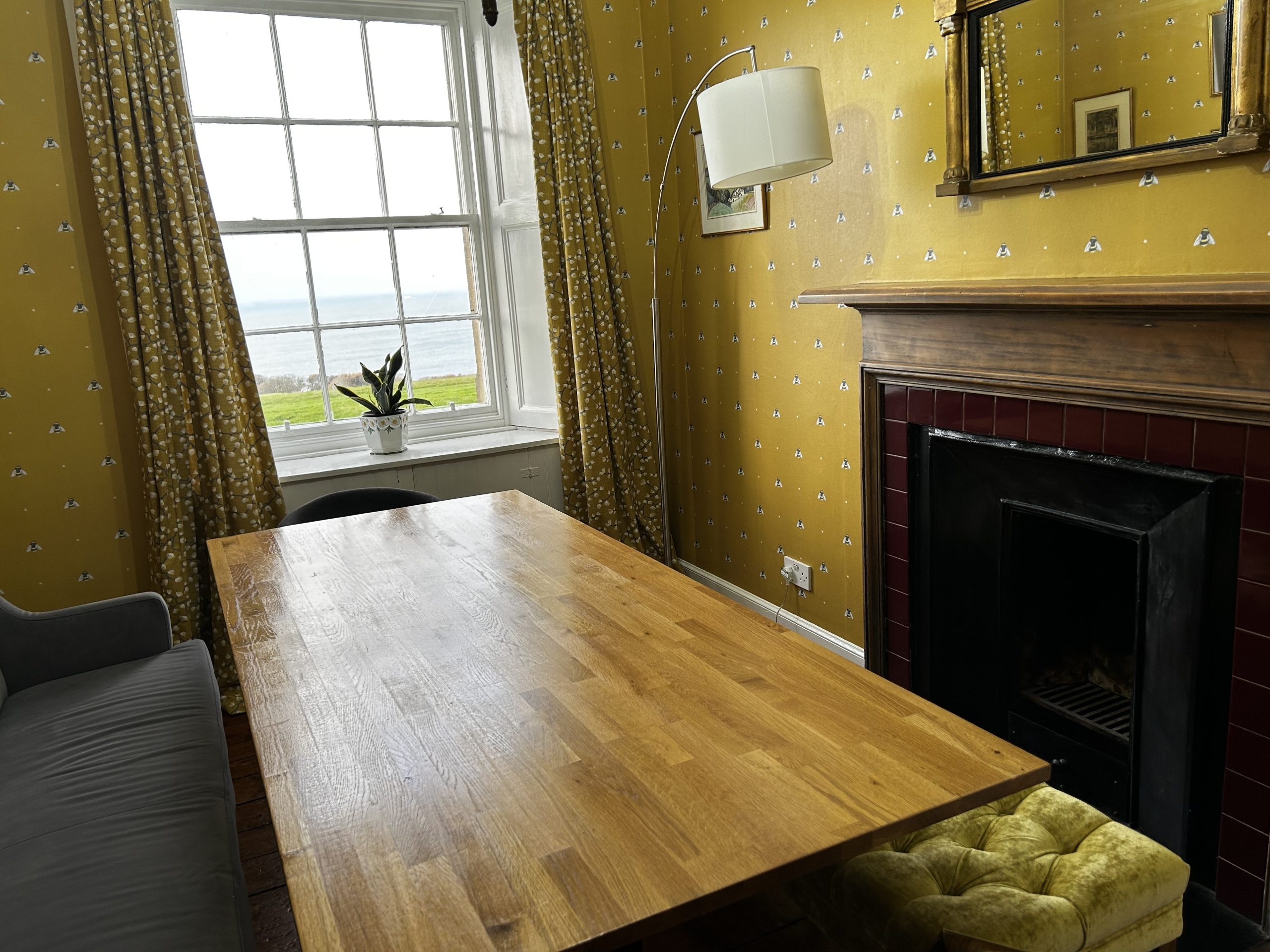 The flat is located on the ground floor of the castle overlooking the front lawns.