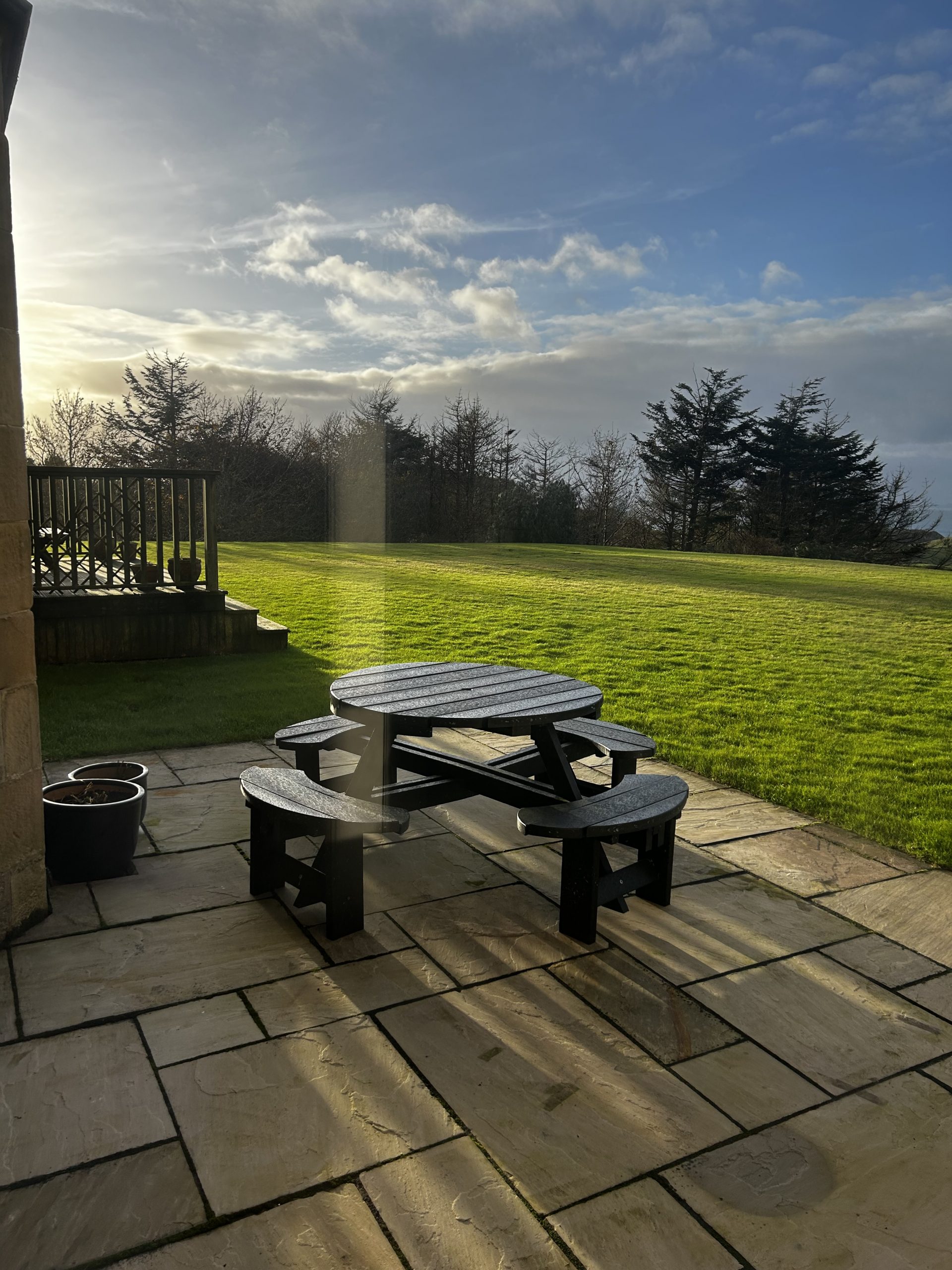 The entrance to the Terrace flat is down a stone staircase to the side of the Castle. There is an open fire in the flat and a plentiful supply of logs available from the wood store.
