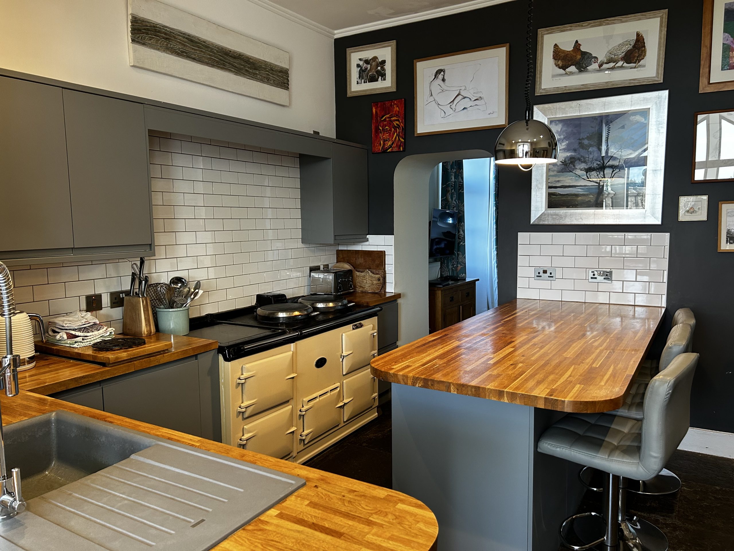 - Kitchen: with 4 oven Aga, dishwasher, fridge-freezer, electric cooker, microwave, Nespresso coffee machine.