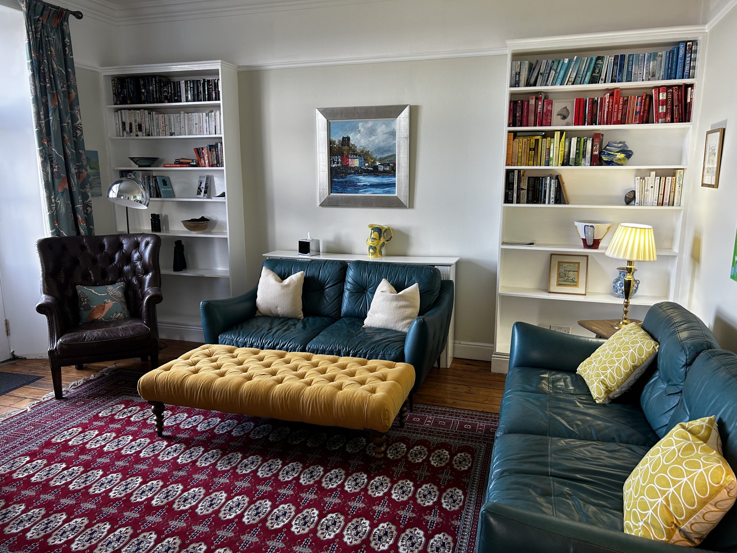 The West Wing is a self -catering apartment within the castle. With French doors opening onto the lawns from the sitting room, the views of the Atlantic and Outer Hebrides are spectacular.